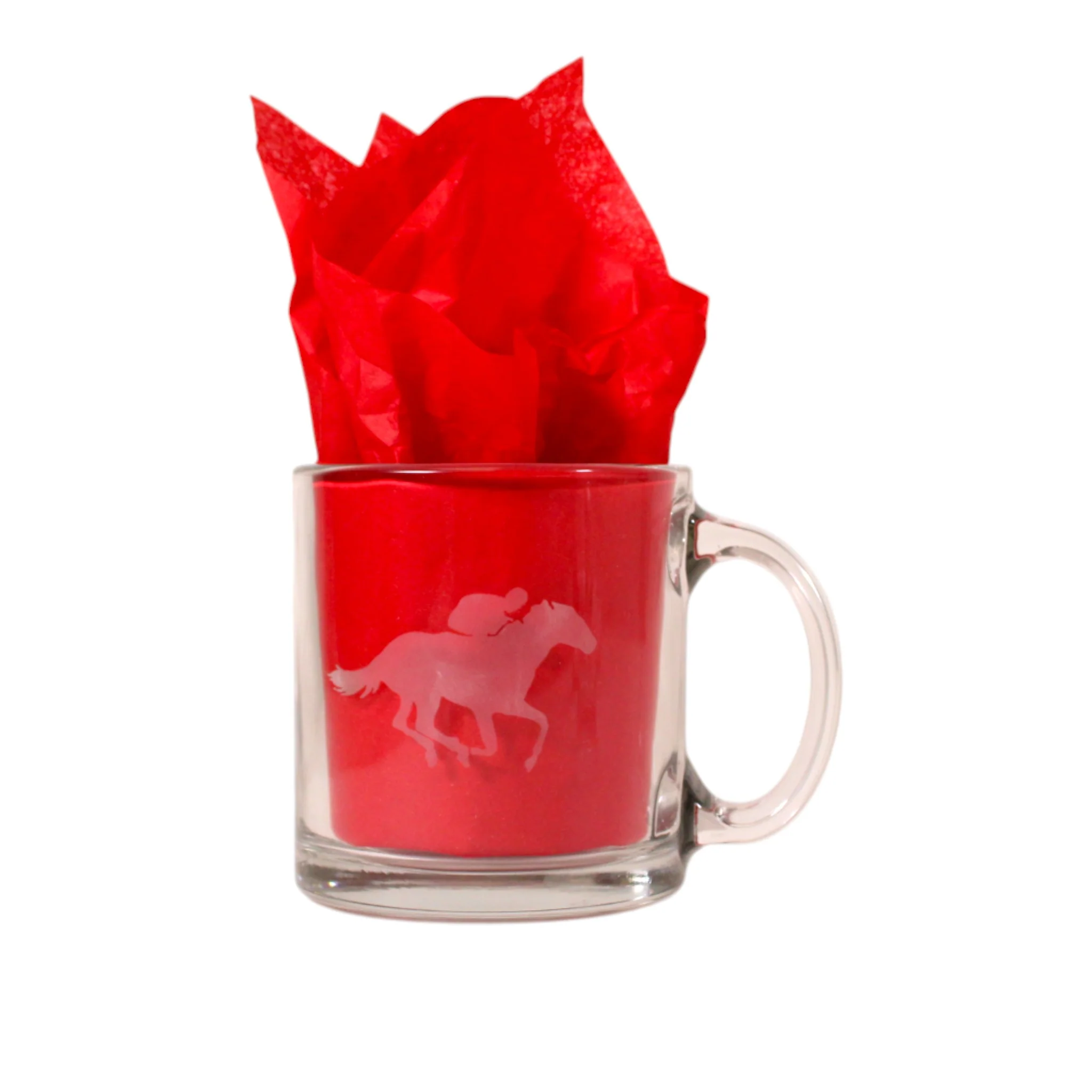 Etched Glass Mug – Kentucky, Indiana, Fleur de Lis, Thoroughbred & Jockey Designs