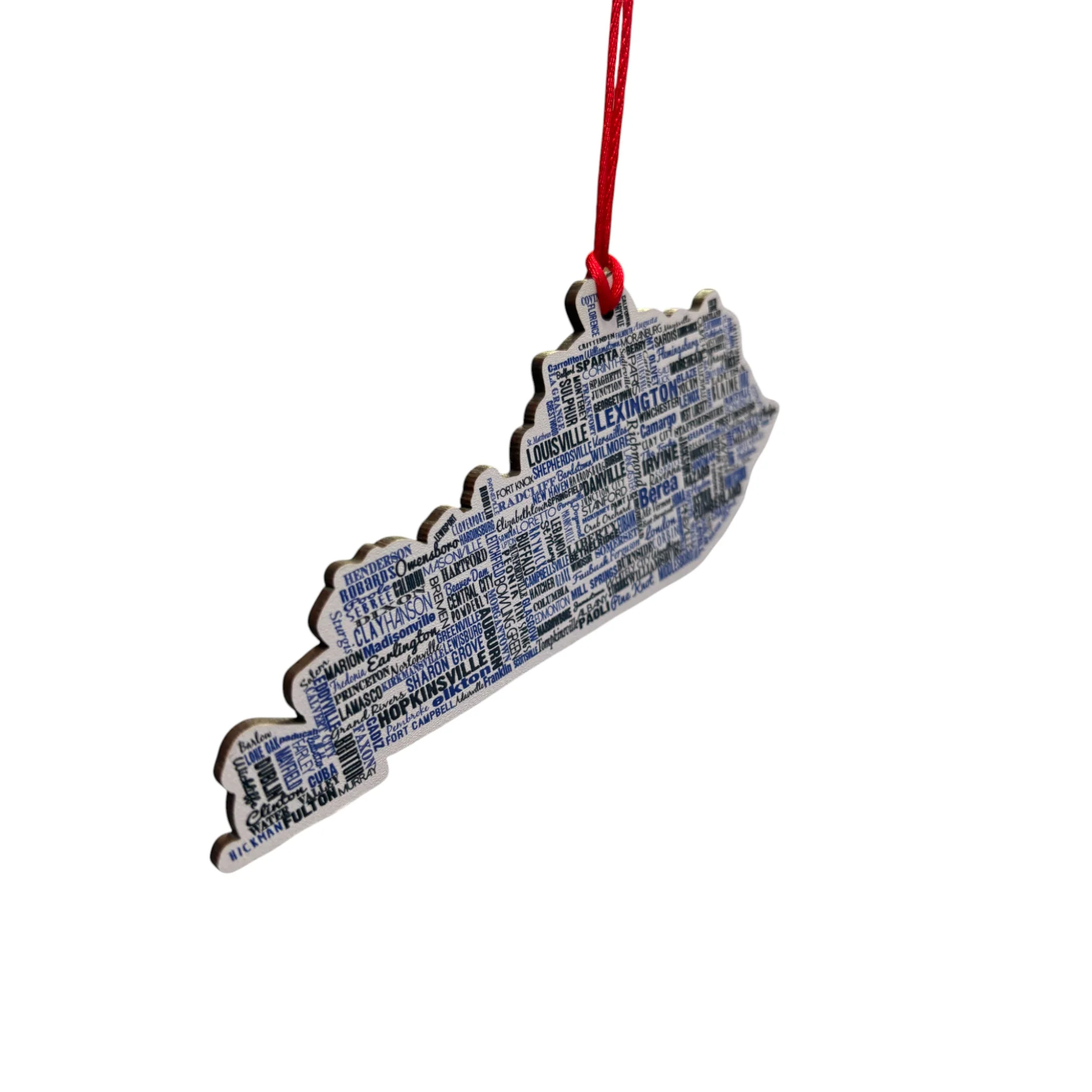 Each ornament is carefully laser-cut from premium wood into the exact shape of the state of Kentucky, ensuring both precision and durability. To make it even more special, the surface is etched with the names of numerous geographically accurate cities—ranging from Louisville, Bowling Green, and Covington to charming small towns like Beattyville, Crofton, and Burkesville. This thoughtful detailing brings an extra layer of authenticity, making it a treasured piece for Kentuckians and visitors alike.