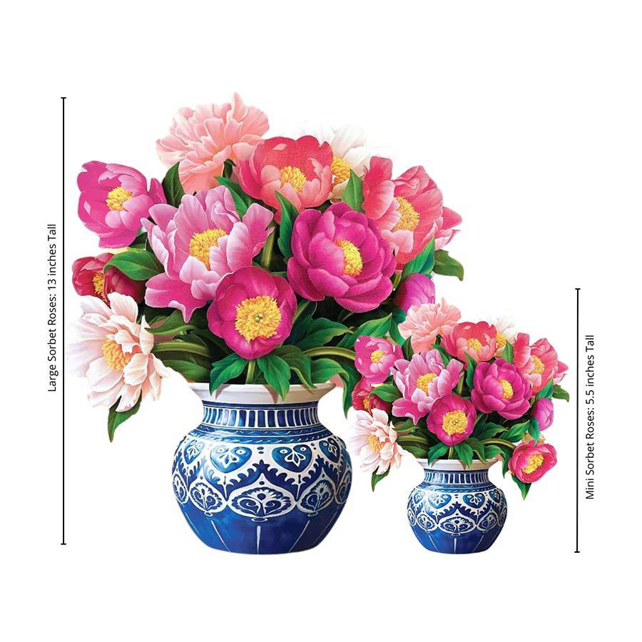 Vivid and dramatic, this luxurious display of blooming peonies will transport you to paradise! Comes complete with decorative indigo and white pot and matching note card. Symbolic of bliss and beauty, this is the perfect arrangement to wow your loved ones. Comes with coordinating blank card. Mails flat in a vibrant envelope.