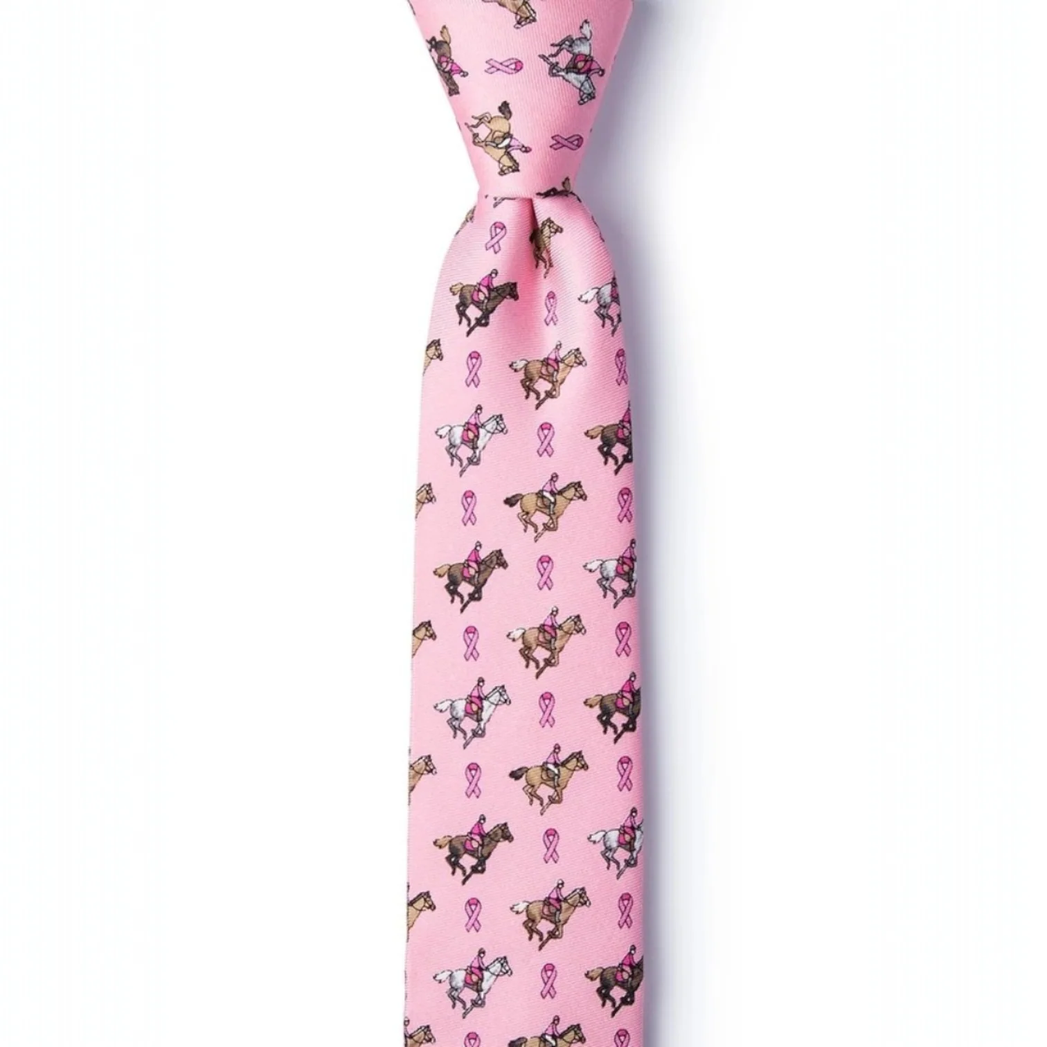 Proudly show your support and stand in solidarity with those affected by breast cancer! The Race for the Cure collection features a beautiful pastel pink hue adorned with a meaningful repeating pattern of racing jockeys and breast cancer awareness ribbons. Crafted from luxurious 100% silk, these ties offer a smooth, sophisticated drape that looks fantastic with a sharp suit or blazer. Whether you are heading to a fundraising gala, attending a race day event, or simply want to wear a symbol of hope, this collection provides an elegant way to make a difference. Choose between the sleek skinny tie or the classic pre-tied bow tie, and wear your support with perfect style. Grab yours and help spread awareness today!